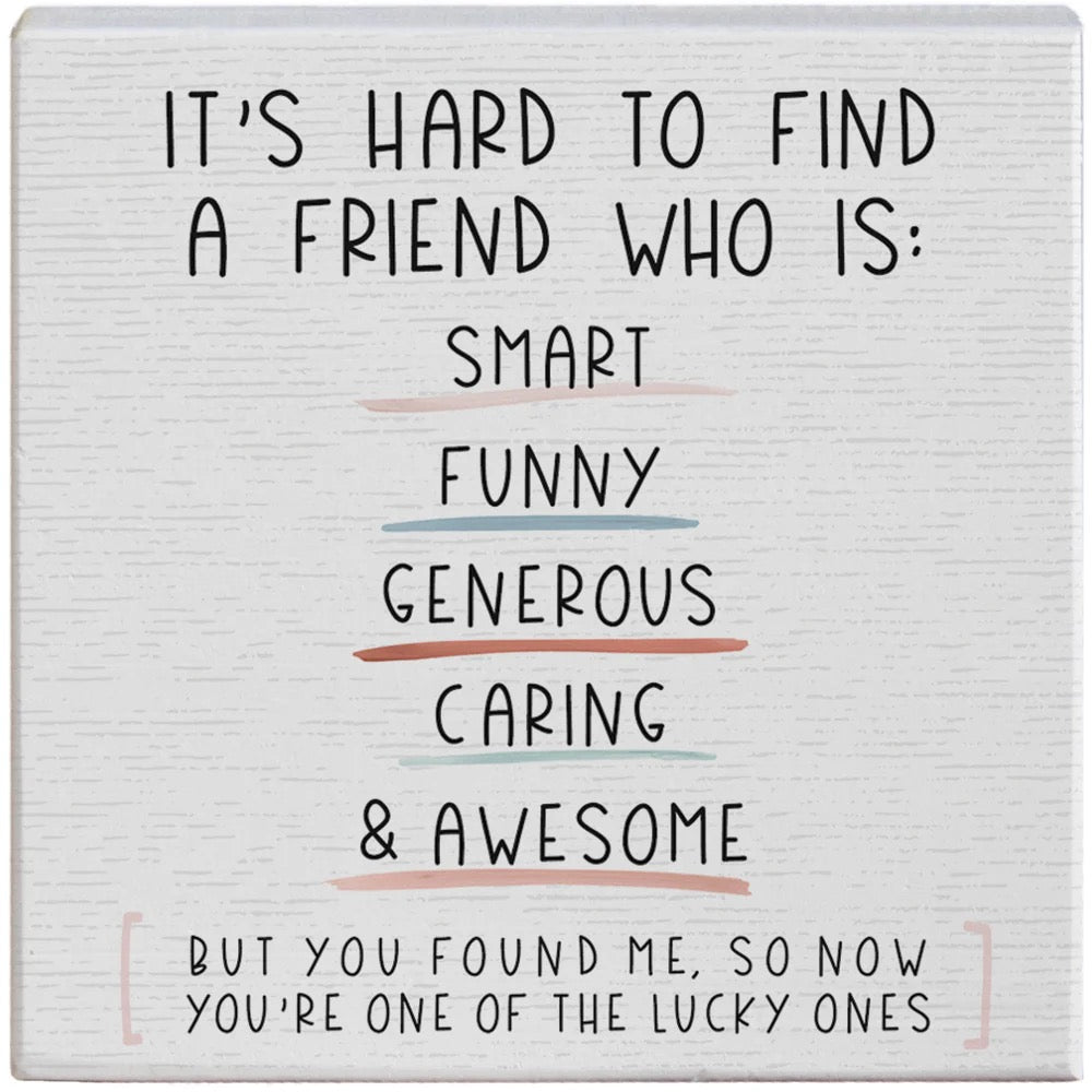 "IT'S HARD TO FIND A FRIEND WHO IS: SMART, FUNNY, GENEROUS, CARING & AWESOME. BUT YOU FOUND ME, SO NOW YOU'RE ONE OF THE LUCKY ONES."