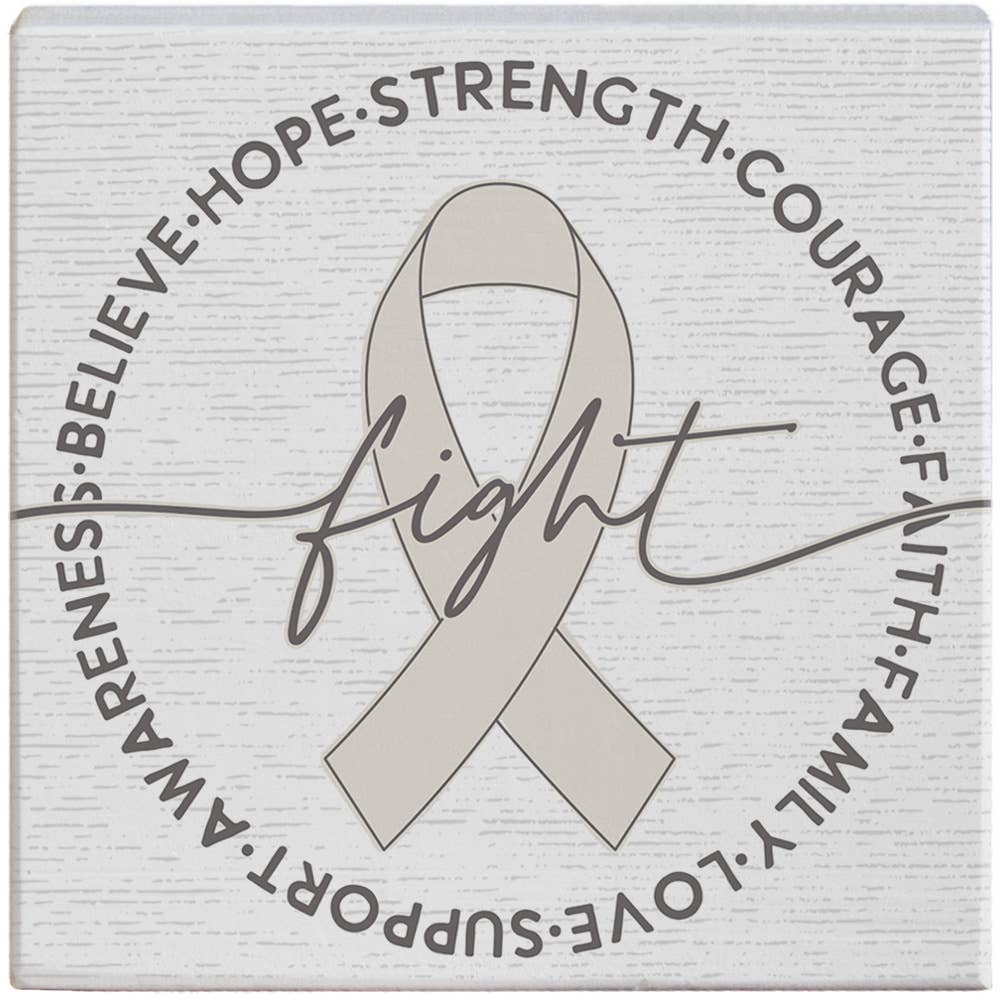 A steadfast reminder of courage and community, this handcrafted pine block centers a tan awareness ribbon with "Fight" at its heart, encircled by the words believe, hope, strength, courage, faith, family, love, support, and awareness. Designed to bring quiet strength to desks, shelves, and tabletops, it's a meaningful accent for home spaces, offices, nurse stations, waiting rooms, and encouragement corners.