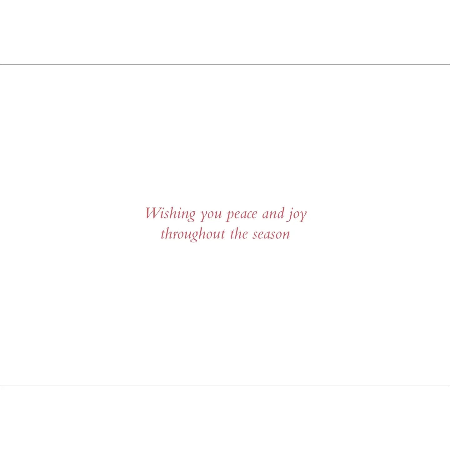 - Inside greeting: Greeting: Wishing you peace and joy throughout the season