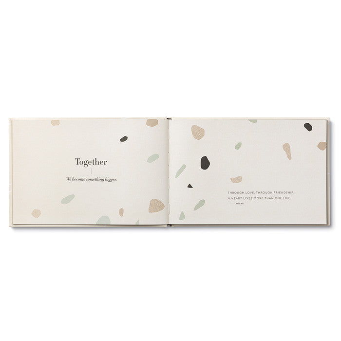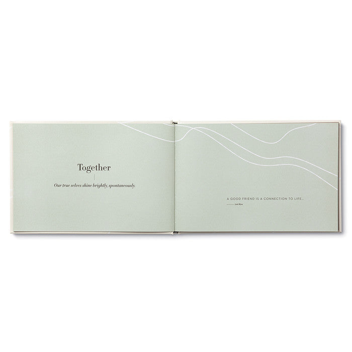This is a celebration of the power of "we." Combining thoughtful quotes and honoring sentiments, this elegant friendship book is a sentimental gift to share between friends, allies, partners, coworkers, volunteers-those special people with whom we make the world better.