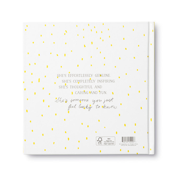 What is a friend? She's someone you can count on. She's someone you look forward to. She's simply wonderful but she's brilliantly complex. And she makes a difference in the world around her, every single day. Express your gratitude with this collection of heartfelt thoughts to tell her just how genuine, inspiring, and fun she truly is.