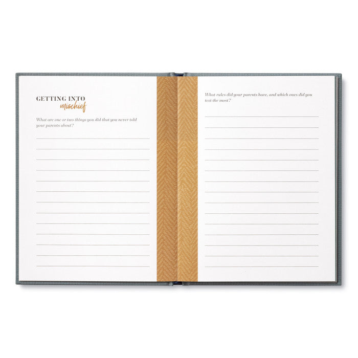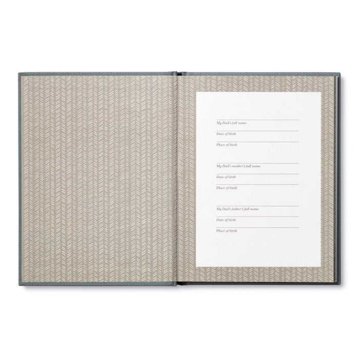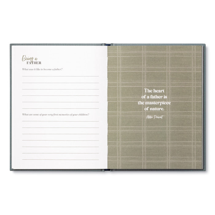 Use the book's thoughtful prompts to capture stories that have shaped your father's life, such as: