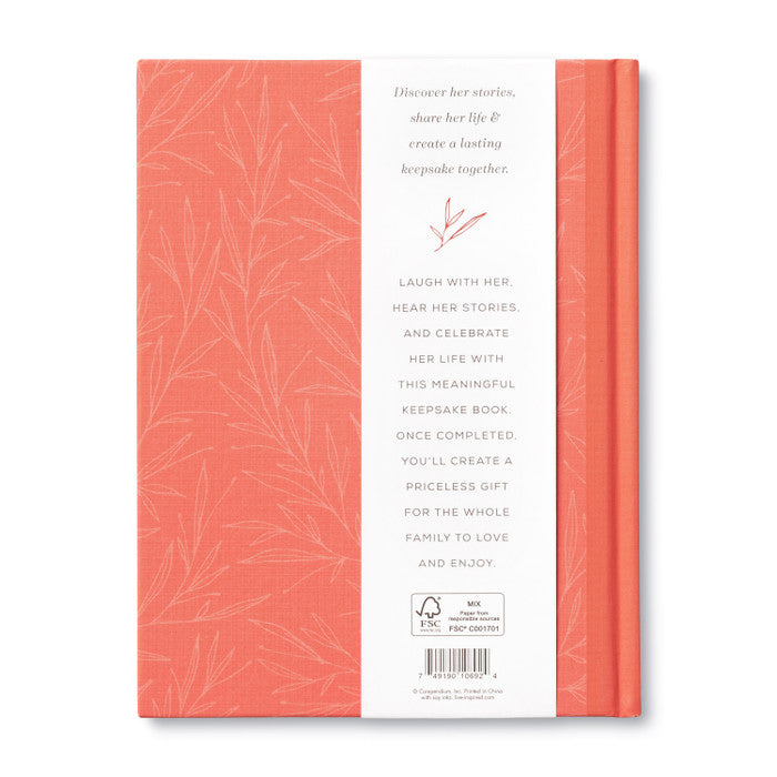 Inside, you'll find thoughtful prompts to record stories that have shaped your mother's life, such as: