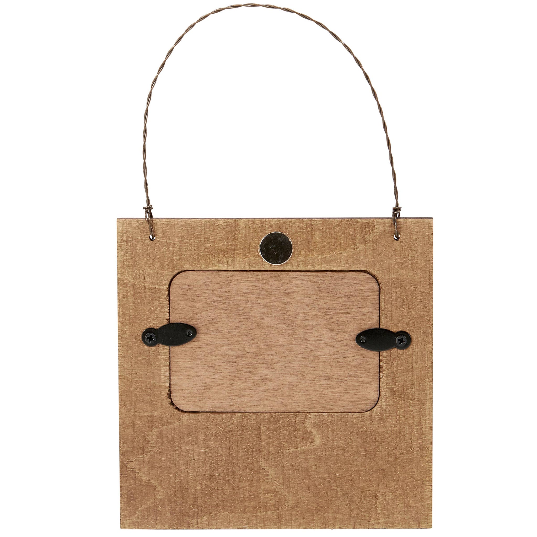 A small wooden frame from our Pet Collection displaying debossed paw print patterns on the top and bottom with distressed details and a fun pet-themed sentiment that reads "Beware Of Wigglebutts." Frame fits a 3 inch by 2 inch photo and can easily be replaced via clips on back. Our Wigglebutts mini frame is easy to display using attached twisted wire hanger or magnet on the back. A fun pet-themed gift perfect for displaying favorite memories as everyday home décor.
