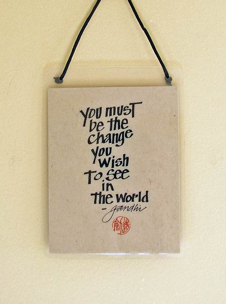 Our laminated signs have a black cord for hanging and measure 5 3/4 x 5 1/4 inches.