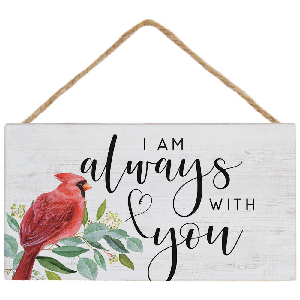 A tender reminder of love's enduring presence, this handcrafted pine wood sign carries a message of comfort and peace. The design features a serene, nature‑inspired motif accented by the vibrant red of a cardinal - a timeless symbol of remembrance and spiritual connection.