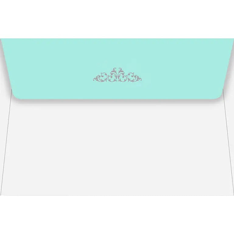 - Tiffany-blue card exteriors feature a crisp linen-like finish.