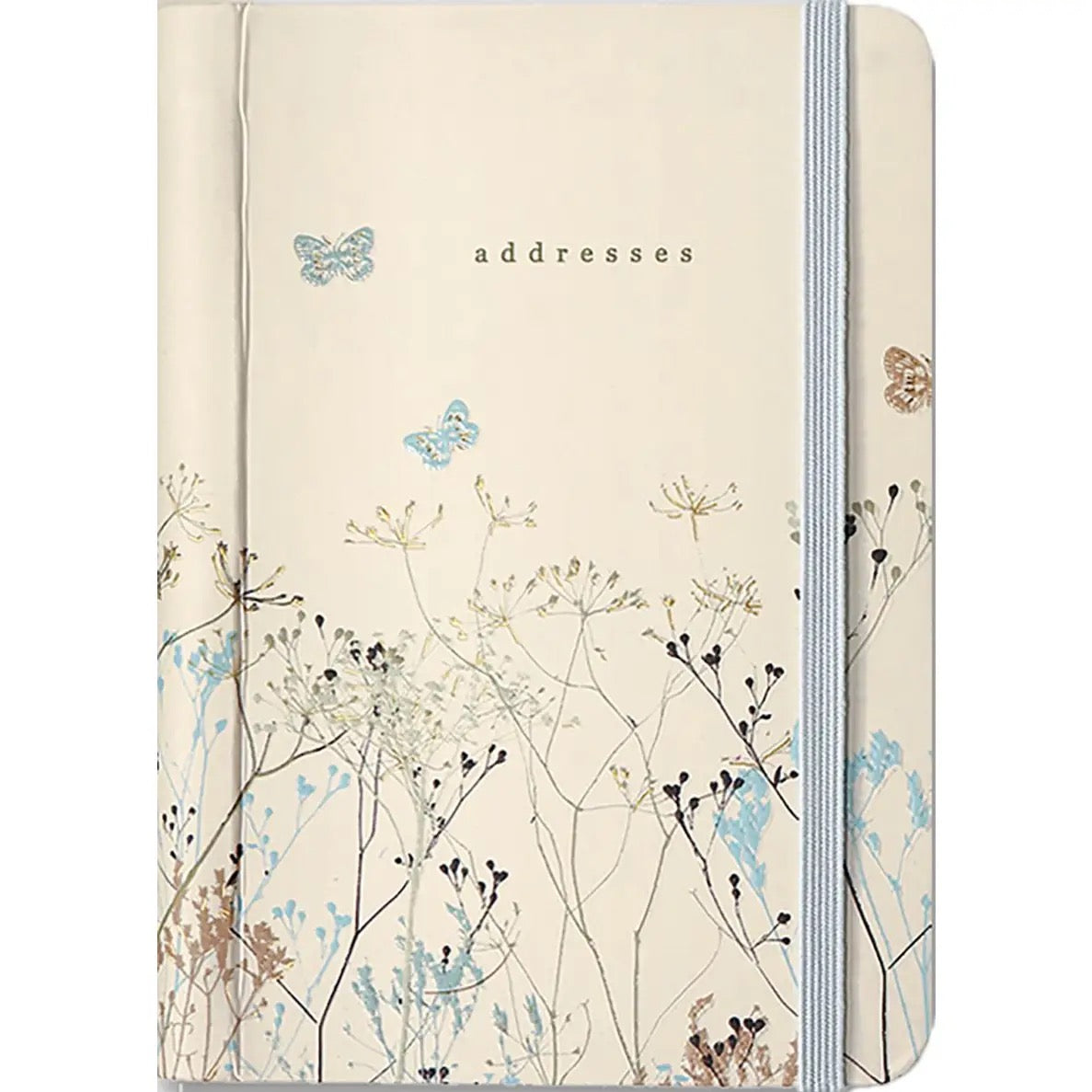 Pretty pocket-sized personal address book has space for more than 400 contacts! Record names, addresses, home and mobile phone numbers, work/fax numbers, and email addresses. Tabbed dividers make finding specific contacts easy. The inside back cover pocket holds postage stamps, notes, and more. The elastic band attached to the back cover keeps your place or keeps address book closed. Concealed wire-o binding lies flat for ease of use. Butterflies design gleams with gold foil accents. Gloss highlights add polish. Mini address book measures 4-1/4'' wide x 5-3/4'' high. 160 pages.