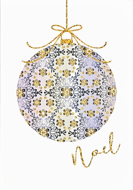 Lovely little greeting cards combine an elegant ornament with the word ''Noel.'' Design is embellished with hand-selected touches of gold foil.